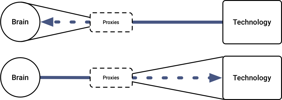 The goal of any consumer technology product is to provide value to a user by interacting with that user in some way: the user can communicate to the technology and/or the technology can communicate to the user. The basic constraints on technology, then, are how it can communicate with the user, and how the user can communicate with the technology. Ultimately, all communication to the user winds up in the brain, and all communication from the user originates in the brain. Existing consumer technology modalities use proxies to communicate with the brain, and to receive communication from the brain. For example, the sound of a notification is a proxy for placing information in the user’s brain; speech is a proxy for brain-situated intention when using a voice command to control Alexa.