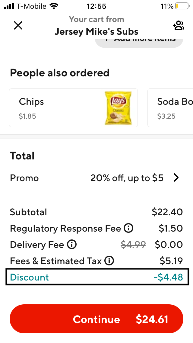 An example of one such promotion, the delivery fee was waved and an additional 15% discount was handed out: