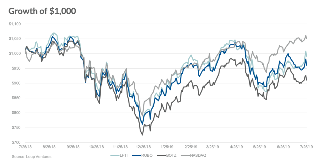 One year ago, we launched the Loup Frontier Tech Index to track the performance of publicly-traded companies that influence the future of technology including AI, robotics, autonomous vehicles, computer perception, and virtual and augmented reality.