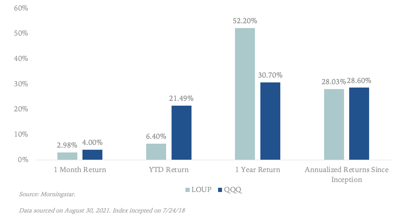 Here is the Loup Frontier Tech Index performance update as of August 31, 2021: