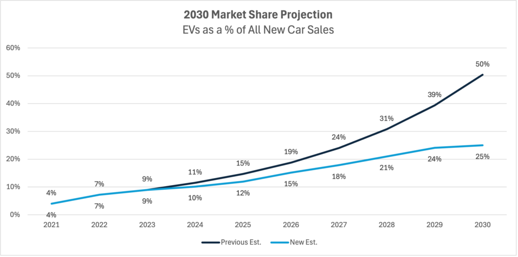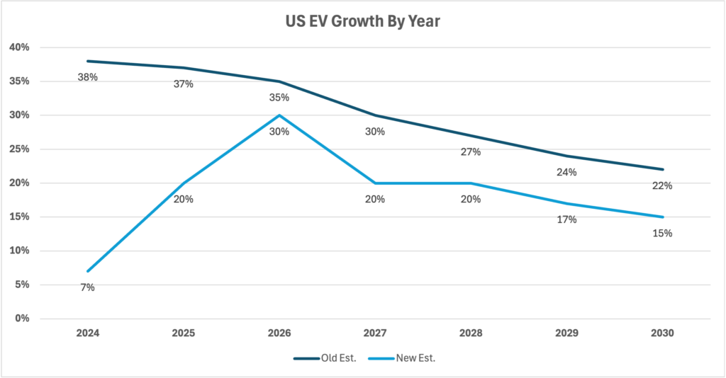 I attribute about half of the EV slowdown to consumer anxiety regarding the availability of charging infrastructure and range, as well as the fact that EVs typically cost 10% more than their gas-powered alternatives. Another dynamic that’s likely impacting EV sales is there was a pull-forward in EV sales in 2021, 2022, and 2023. Essentially, consumers who had been thinking about getting an EV for years finally had compelling options, including Model Y, Model 3, as well as traditional automakers releasing an assortment of EVs. These factors have created a negative snowball effect as traditional auto sees slowing consumer interest in EVs and pares back investments in the space. This results in fewer EV options, which compounds the slowdown.